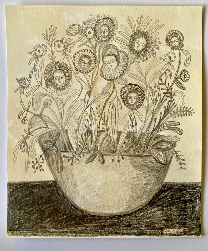 a pencil work on heavy warm white artist paper with tea stain