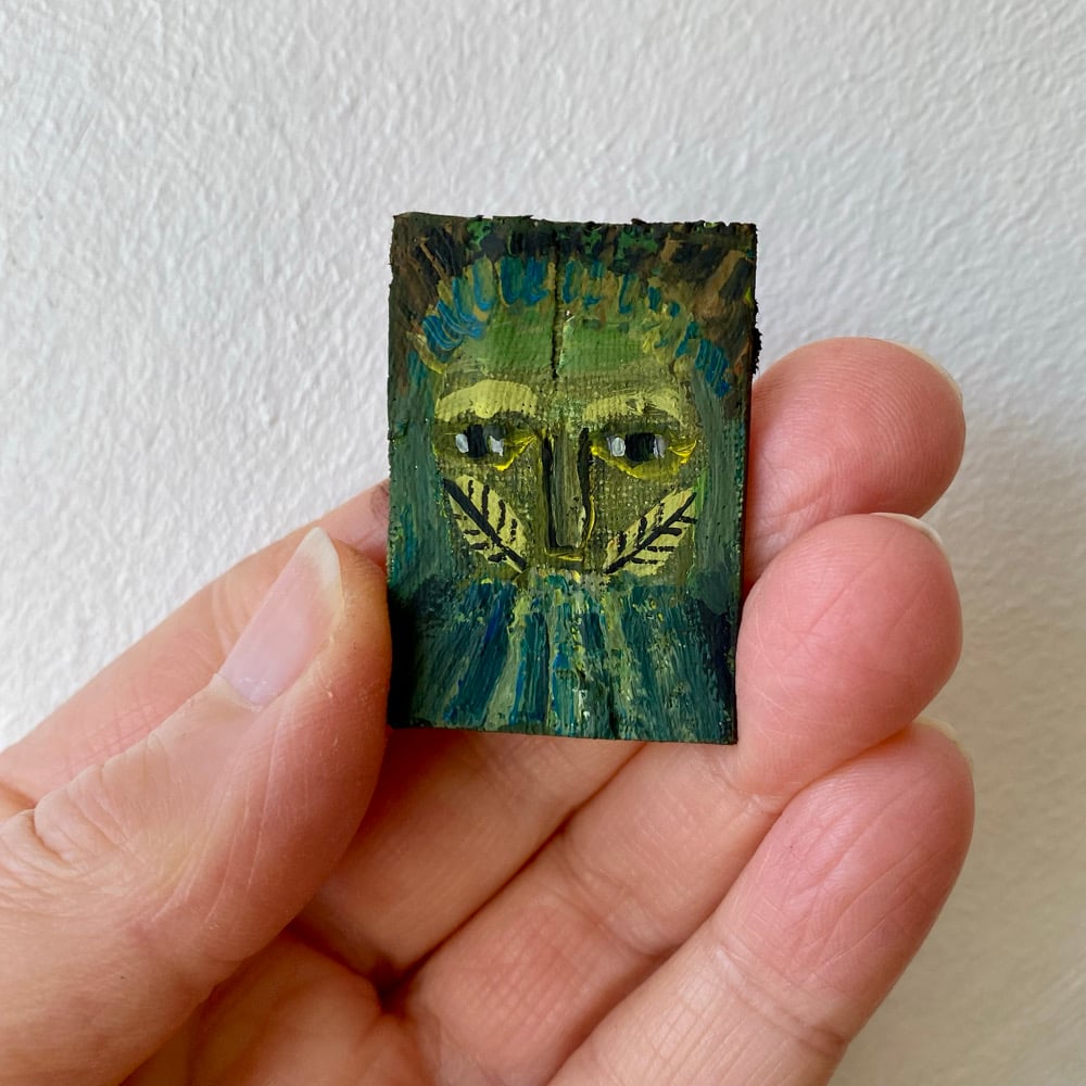 Green man ‘woad leaf’ - tiny painting