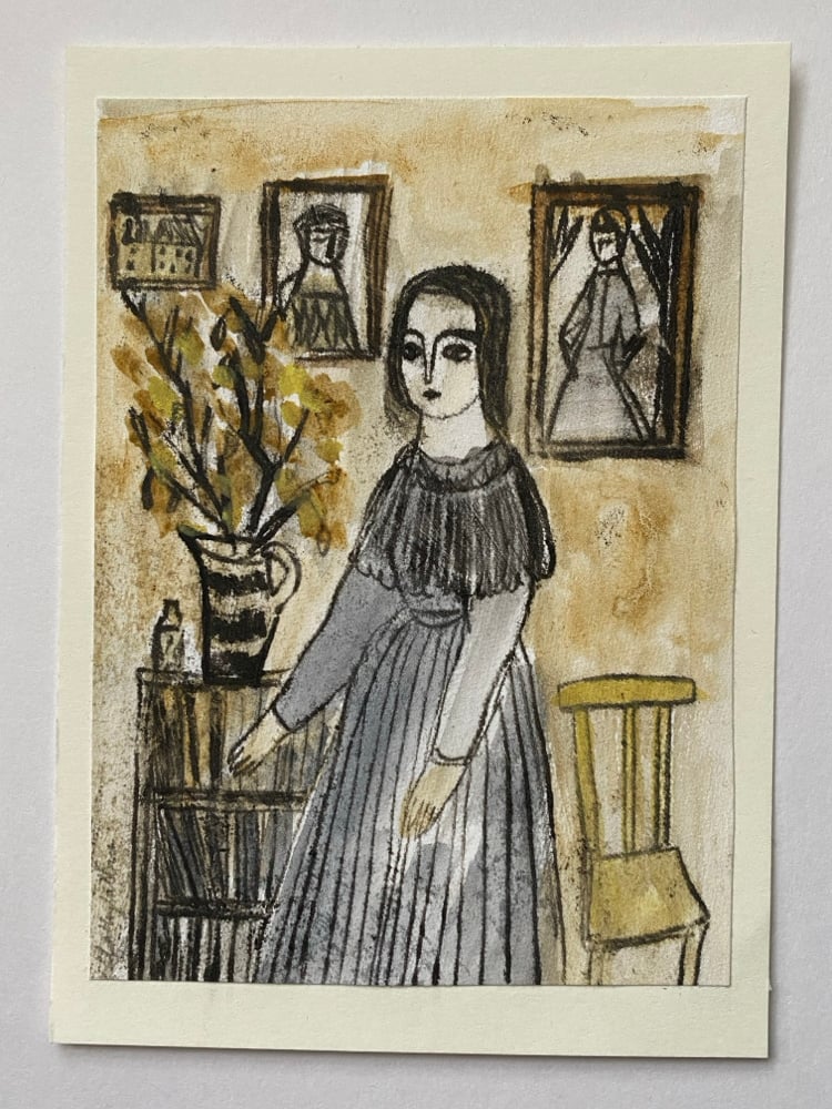 The drawing is made on bamboo paper and has a backing of heavy artist paper.
